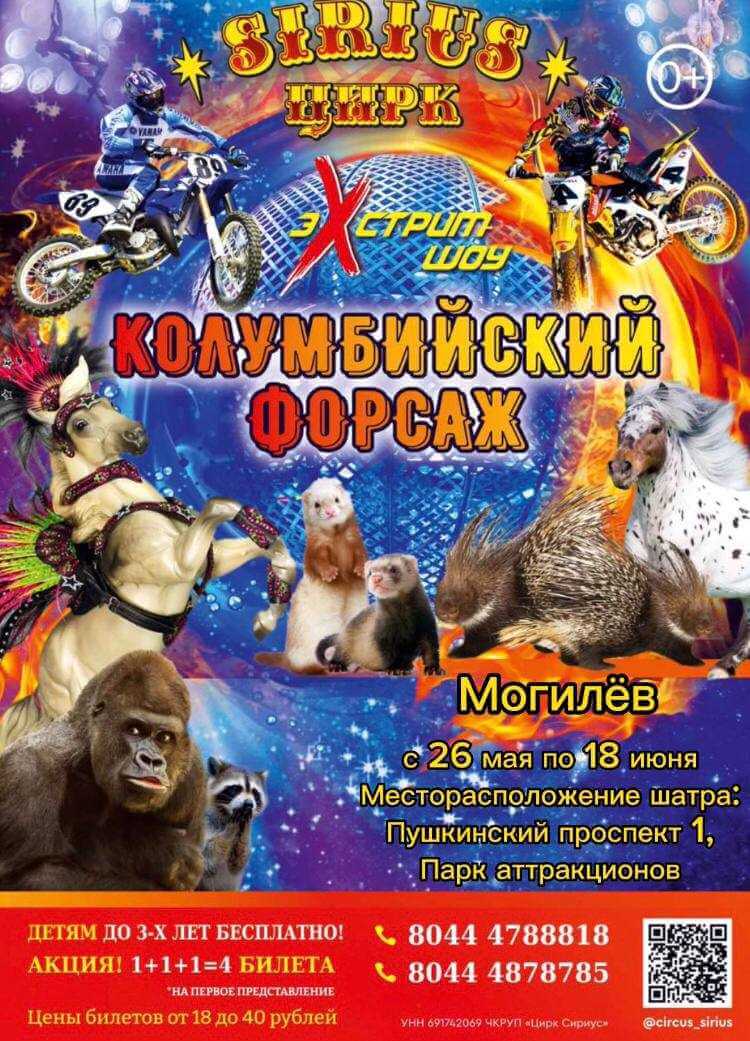 Впервые цирк-шапито «SIRIUS» представляет экстрим-шоу «Колумбийский форсаж.» В Могилеве гастроли проходят с 28 мая по 18 июня.