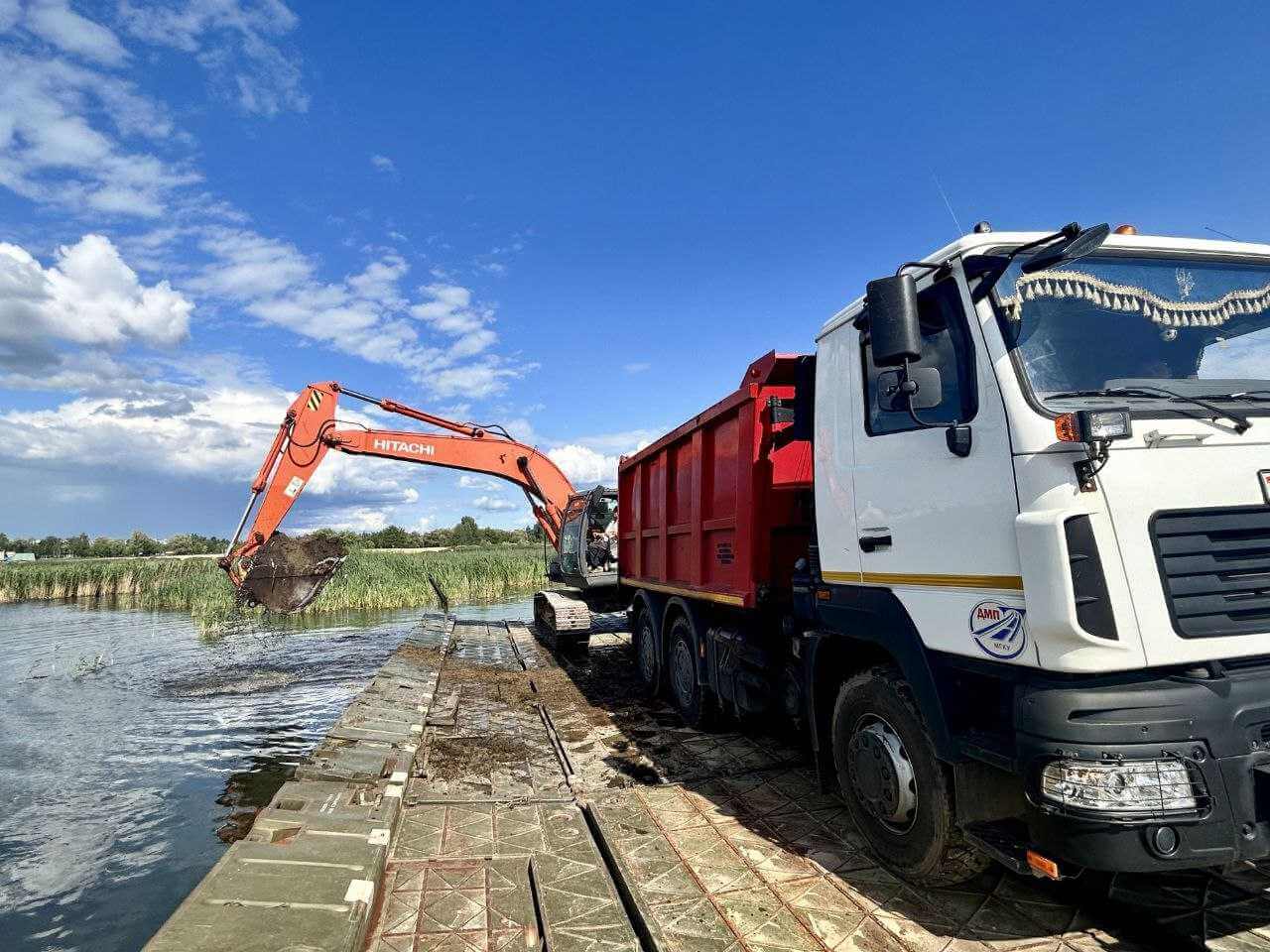 Проекту предшествовал большой подготовительный этап: были задействованы военные, которые устроили понтонный мост. Теперь по нему будет перемещаться техника к птичьему острову - удаление его и отложений на нем является одним из основных шагов на пути к чистому водохранилищу.