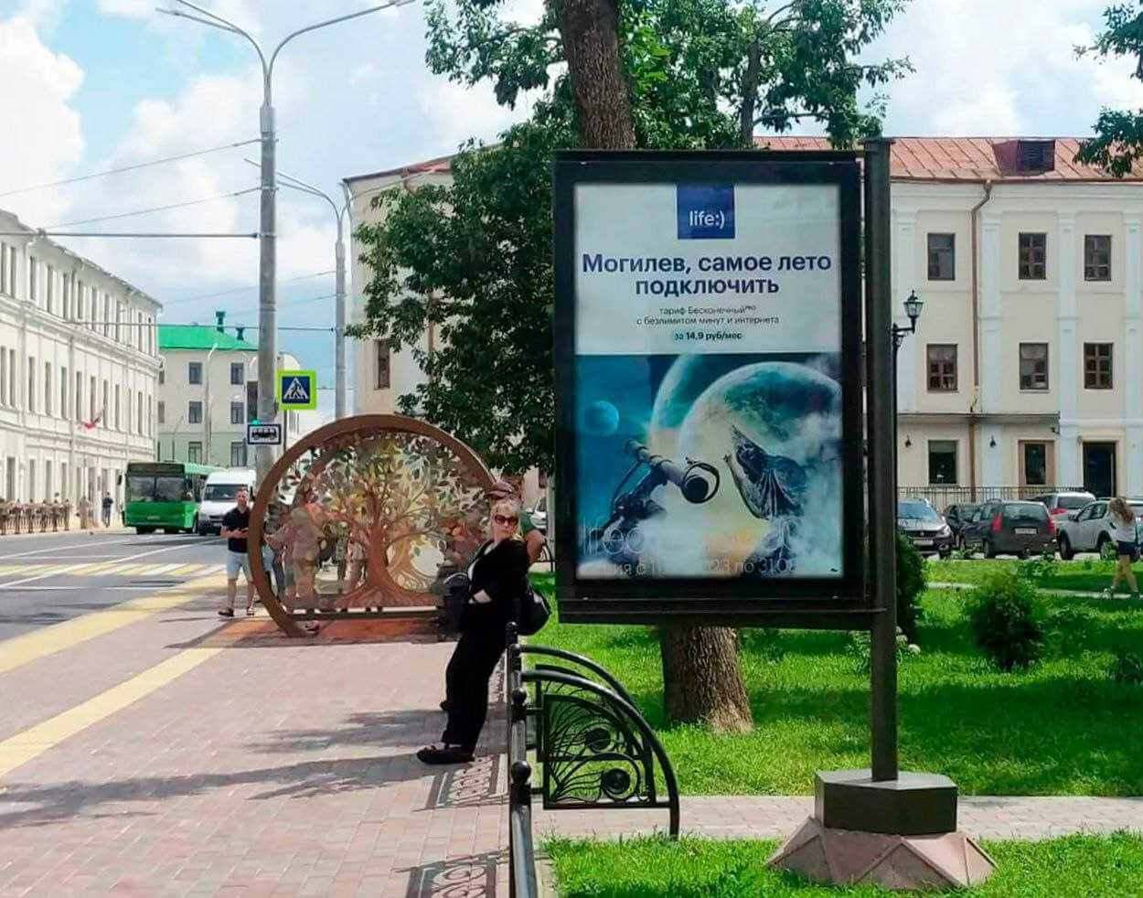 Памятник Звездочету в исполнении искусственного интеллекта появился на билбордах и ситилайтах Могилева. Изображение, сгенерированное нейросетью, оператор life:) подготовил для продвижения одного из тарифов.