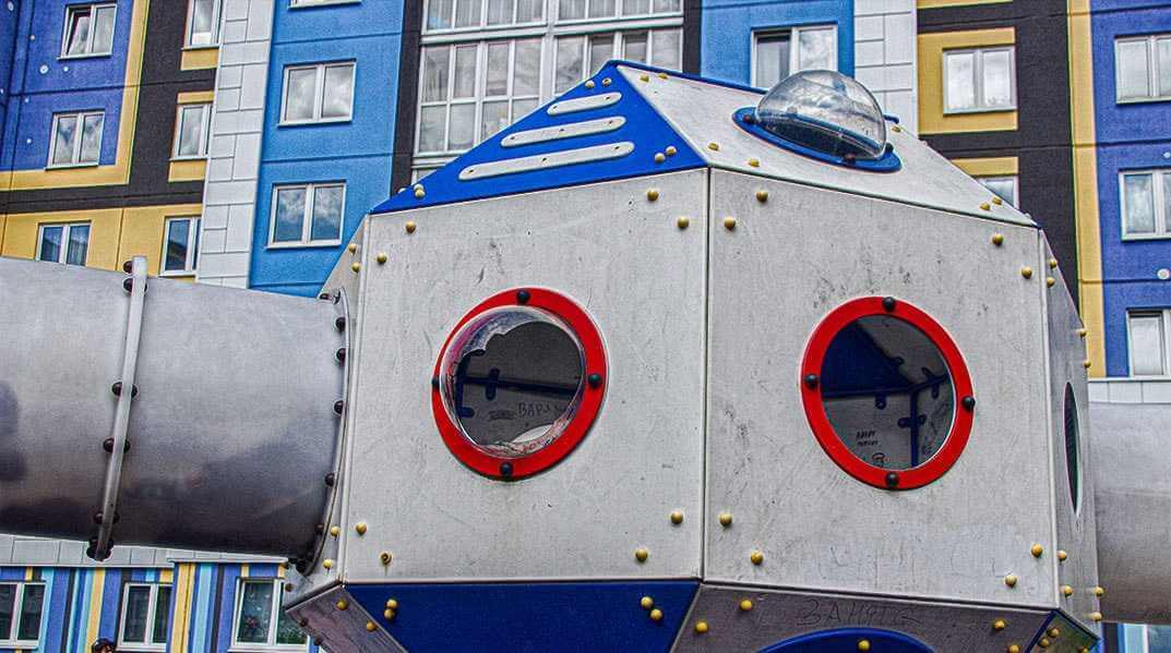 Напомним, «космический» микрорайон начали строить в 2020 году — жилые дома раскрасили тематически, получилось ярко и современно. Юным жителям установили красивую площадку с тренажерами, горками, лестницами. Настоящий космический городок.