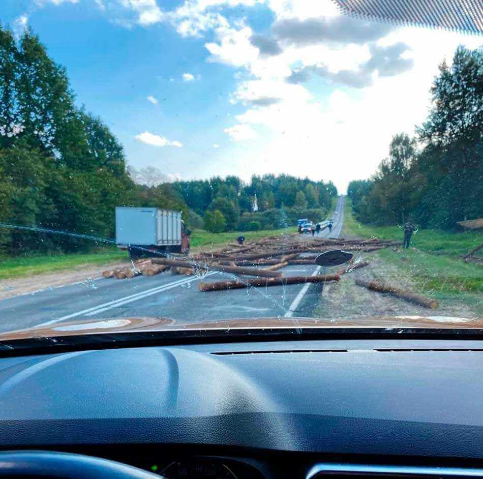 На момент перевозки бревна были увязаны, однако в результате падения тросы порвались, а древесина оказалась на дороге, частично заблокировав движение транспорта.