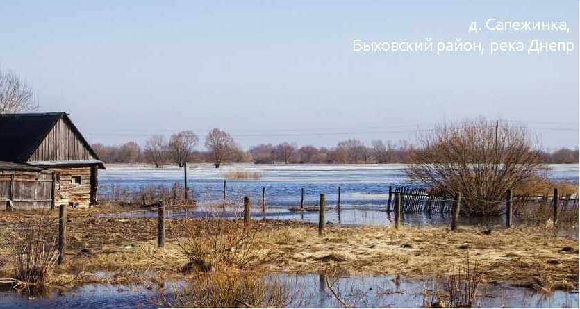 Особенно страдает Быхов — крайние участки там уже сейчас довольно сильно подтоплены. В Сапежинке также из года в год Днепр разливается до дороги и затрагивает крайний хутор.