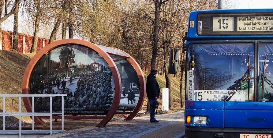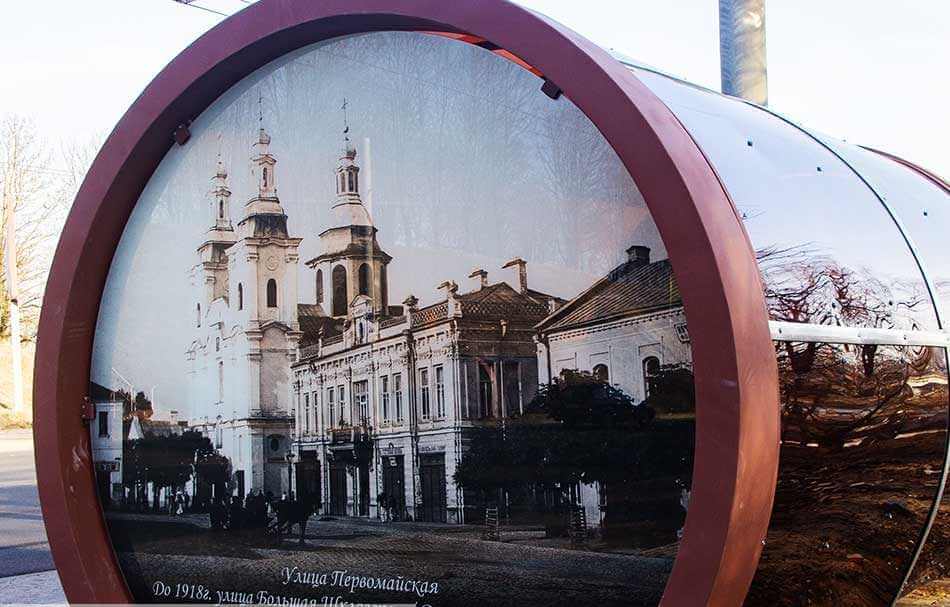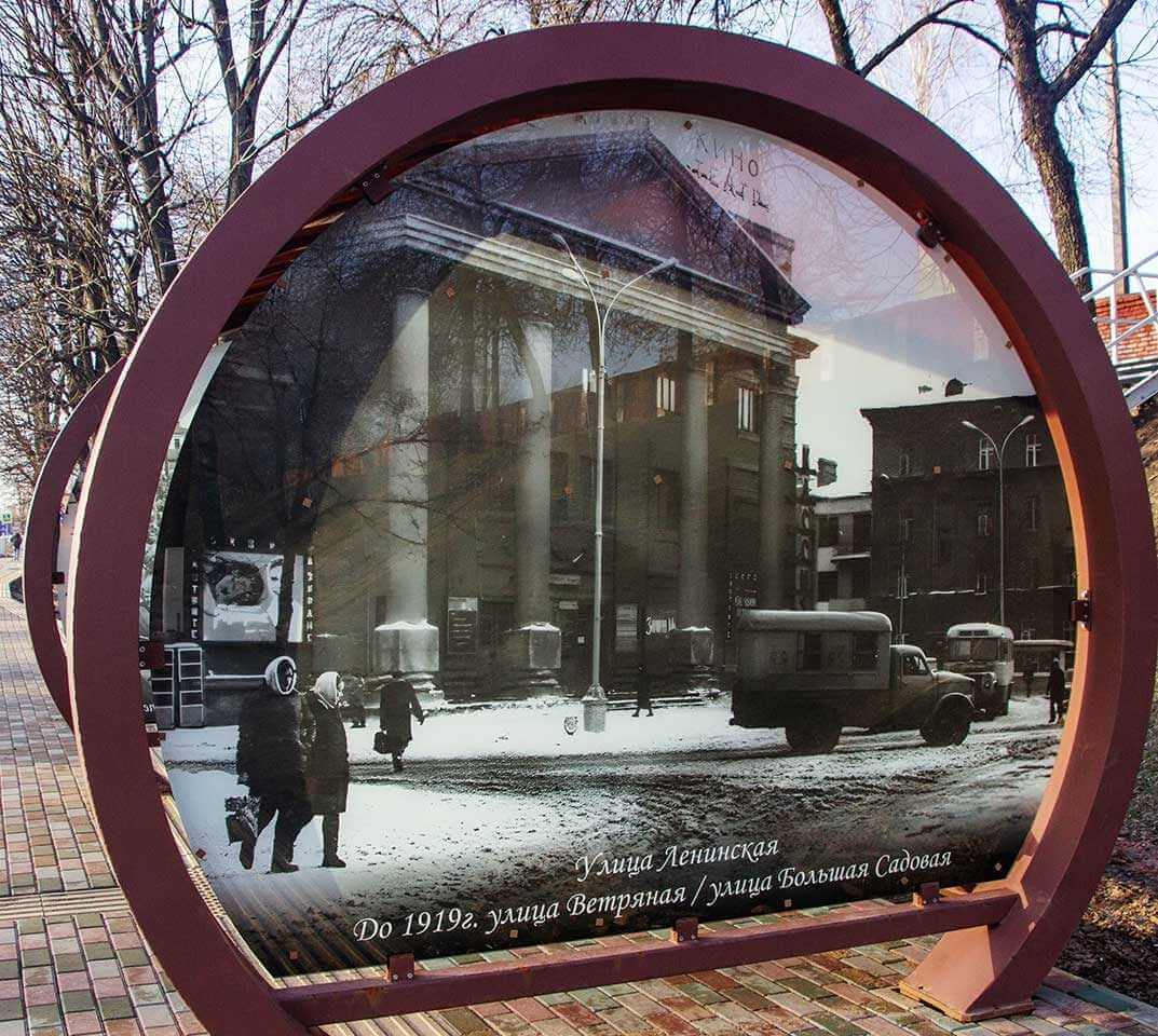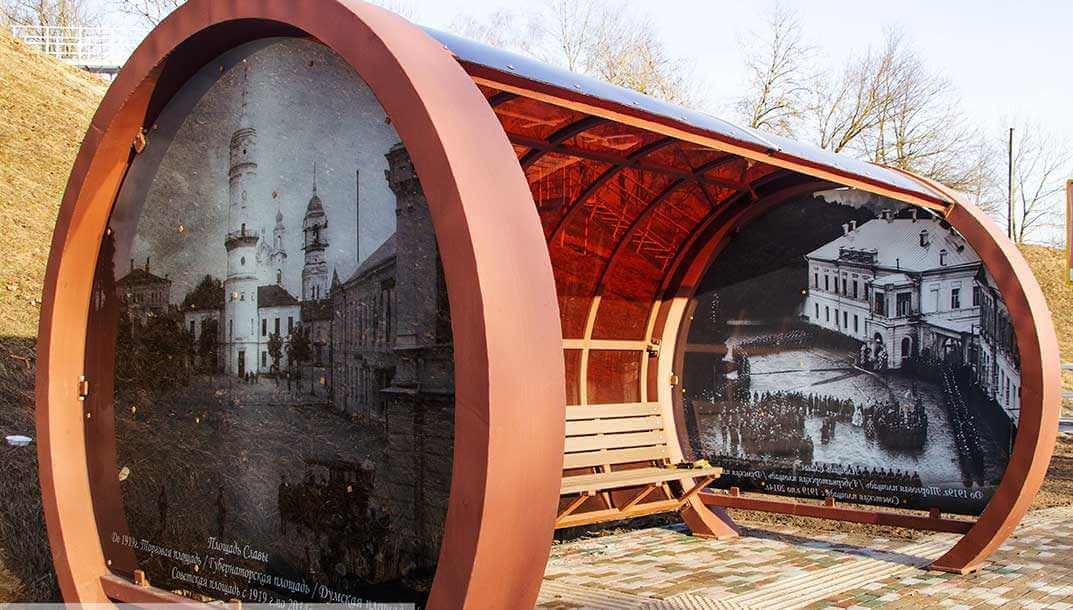 Оформили остановочные павильоны старыми фотографиями нашего города. На каждом изображении размещена подпись, если вдруг кто-то не знает городского пространства или запутается, рассматривая ретро-снимки.