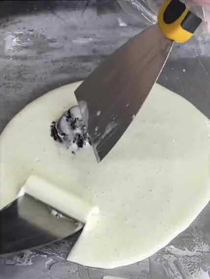 Готовят жаренное мороженное очень интересно, наблюдая за процессом приготовления, можно «залипнуть»