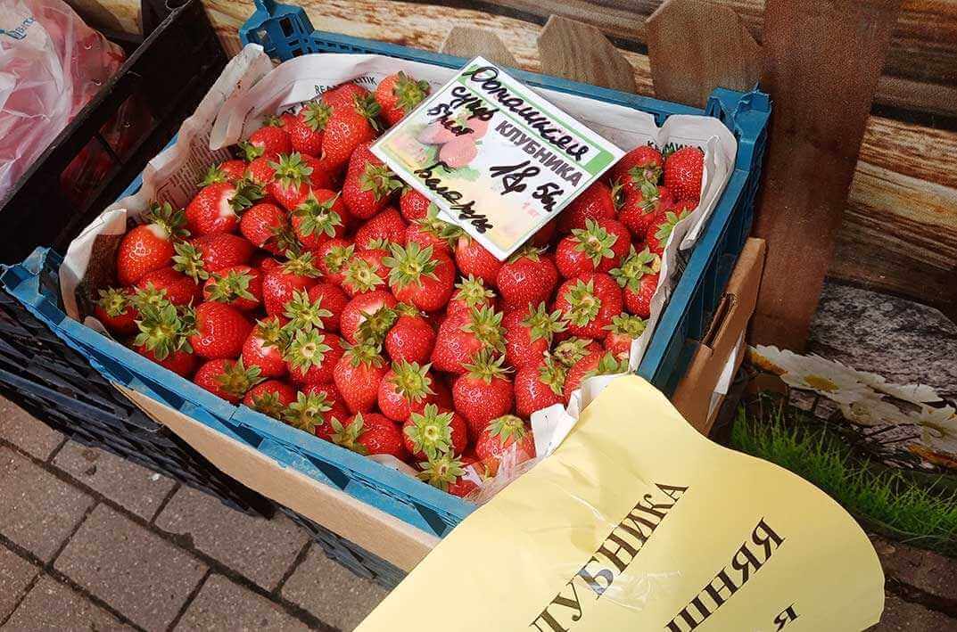 Белорусская клубника есть — продавцы указывают, что ягода привезена из Бреста. По цене — от 18.50 до 20.00. Такую же брестскую клубнику мы нашли в ларьке около Грина (ТЦ Парк сити) — там стоимость уже 23 рубля. В Грине — 24.99.