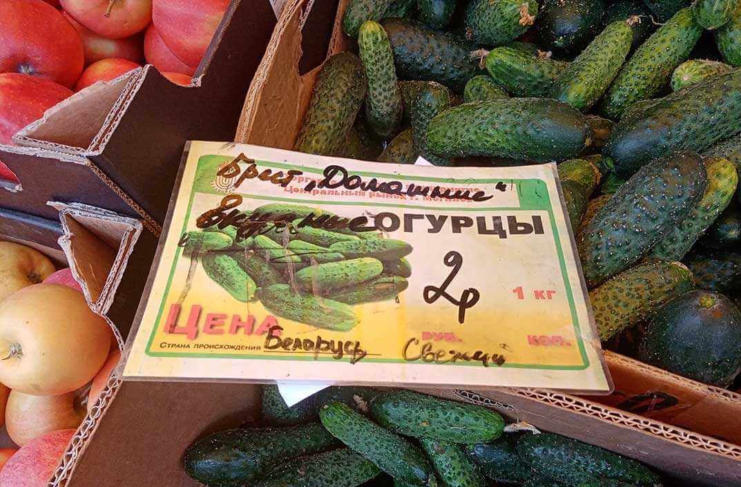 Помидоры из Ирана на рынке можно купить за 5.50, на азербайджанские цена доходит до 16 рублей. Белорусские помидоры от 7 до 12 рублей, российские увидели за 13.50 рублей. Огурцы подешевели — можно найти даже за 2 рубля и очень неплохие по виду.