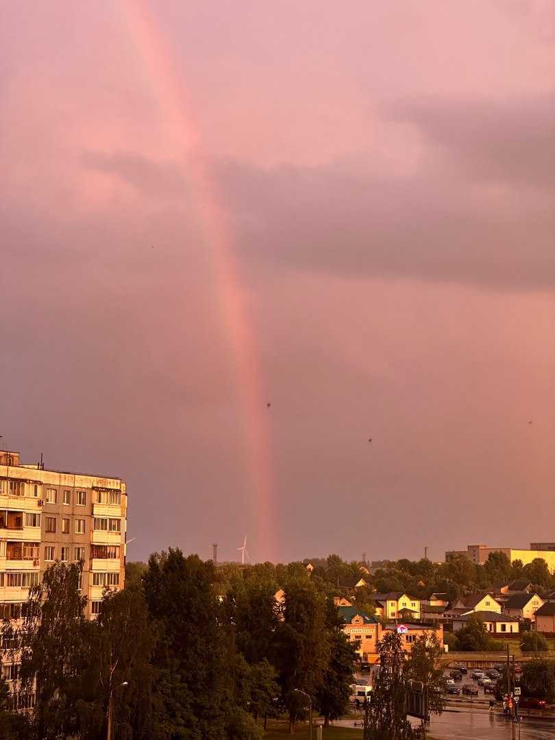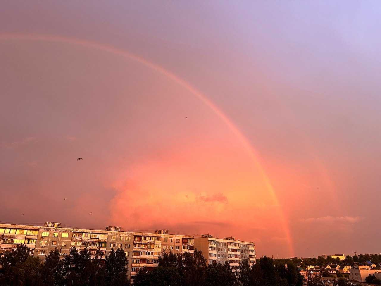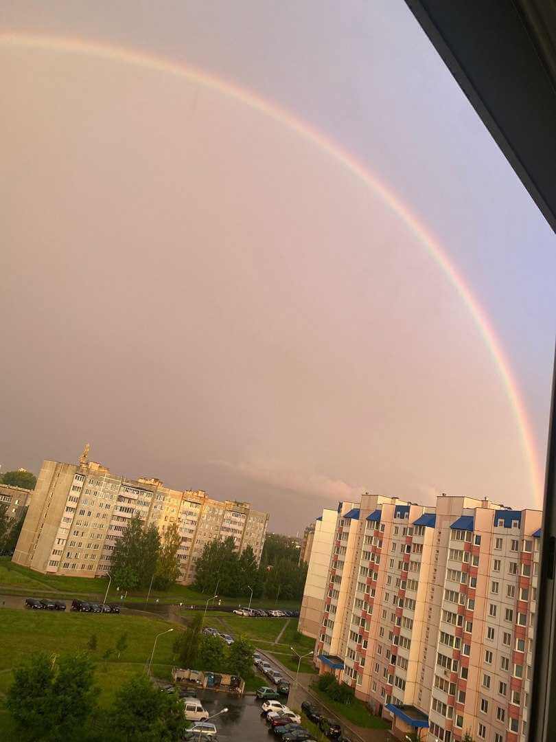 Вчера после дождя могилевчане наблюдали сказочное атмосферное явление над городом. Ленты социальных сетей украшают снимки необычной радуги. Потрясающий визуальный эффект обусловлен закатом.