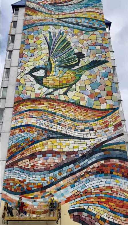 К слову, с противоположной стороны этого же дома красуется изображение синицы от тех же авторов.