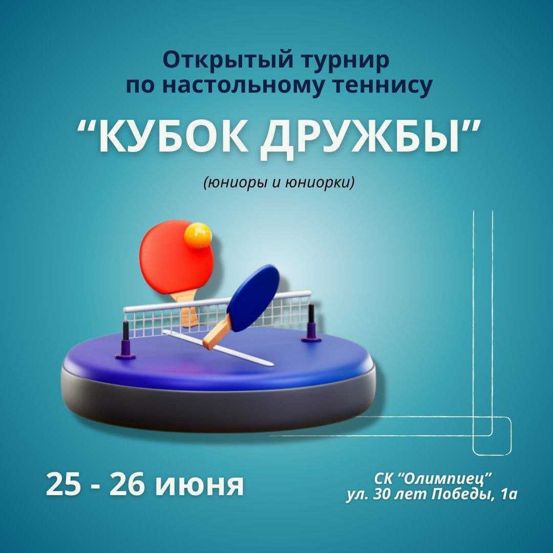 С 25 по 26 июня в игровом зале спортивного комплекса "Олимпиец" в Могилеве состоится открытый турнир "Кубок Дружбы" по настольному теннису.