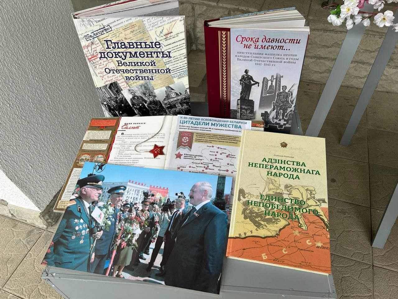 На крыльце УК "Могилевская областная библиотека им. В.И. Ленина" открылась книжная экспозиция "Нам эту землю дедами и отцами завещано беречь", посвященная 80-летию освобождения Беларуси от немецко-фашистских захватчиков и Дню Независимости Республики Беларусь.