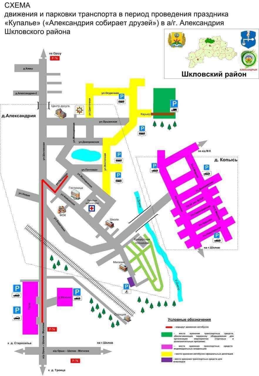 Стоянка легкового транспорта будет осуществляться на подъезде к д. Межник, а также в д. Копысь. Остановочные пункты автобусов, следующих от мест стоянок автотранспорта к месту проведения мероприятий, расположены в д. Межник Шкловского района.
