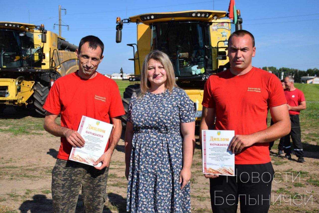 Заслуженные дипломы комбайнерам вручили главный специалист отдела идеологической работы и по делам молодежи райисполкома Янина Руцкая и специалист райкома профсоюза работников АПК Алеся Новичёнок.