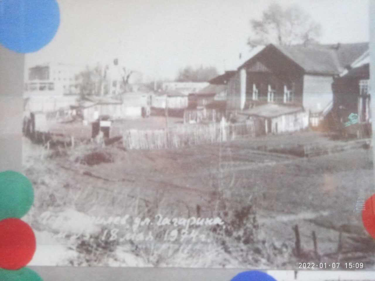 Дом на Гагарина со стороны Ледового дворца, тогда непостроенного. Накануне стоительства ДК Химволокно. 18 мая 1974 г. Источник: Магілёў. Горад, які быў..., Людмила Гришанова