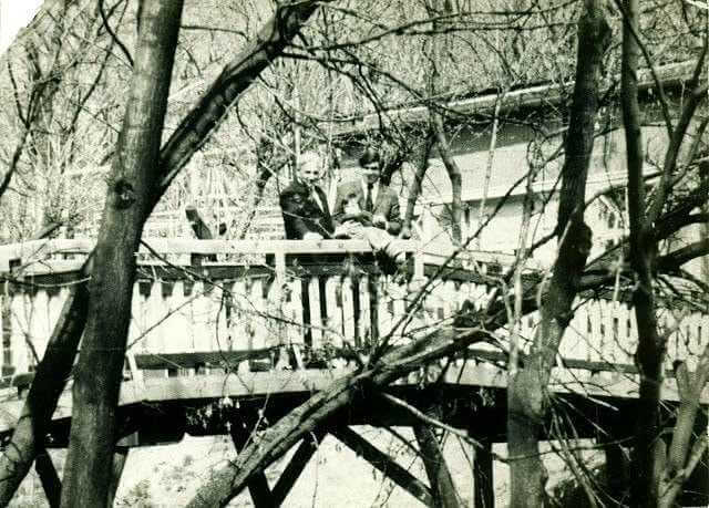 Тот самый мостик в парке Горького и летнее кафе на заднем плане. Фото 1974 года. К сожалению мост порезали ,сваи торчат.Кафе разбурили ,а чудо фонтанчик снесли.......... От участника: Александр Пузиков