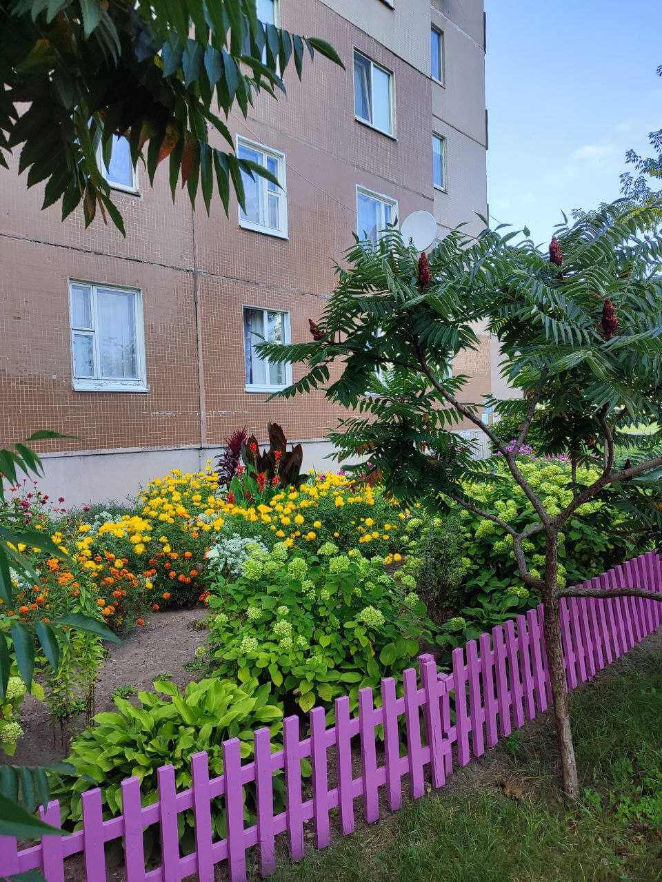 Обычная многоэтажка на бульваре Непокорённых в Могилёве. А клумба необычная - загляденье.