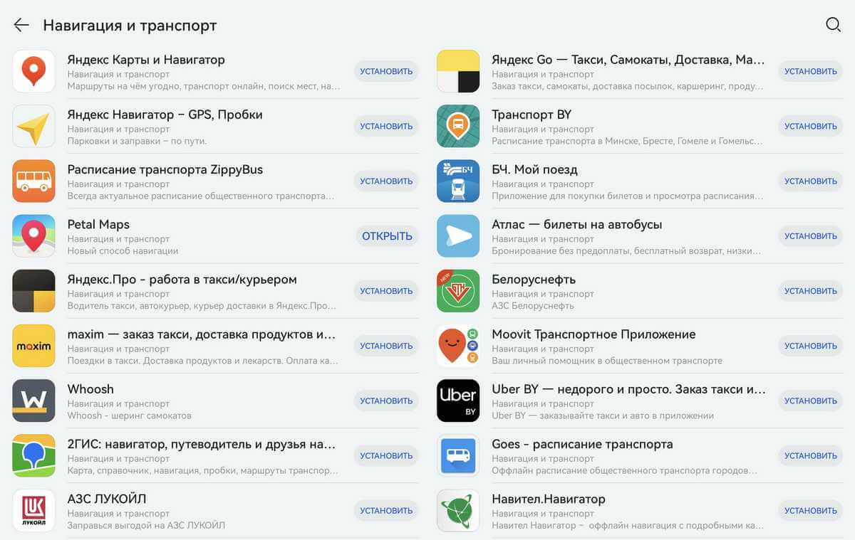Чтобы не потеряться на местности, можно поставить «Яндекс карты» или фирменный картографический сервис Petal Maps от Huawei.