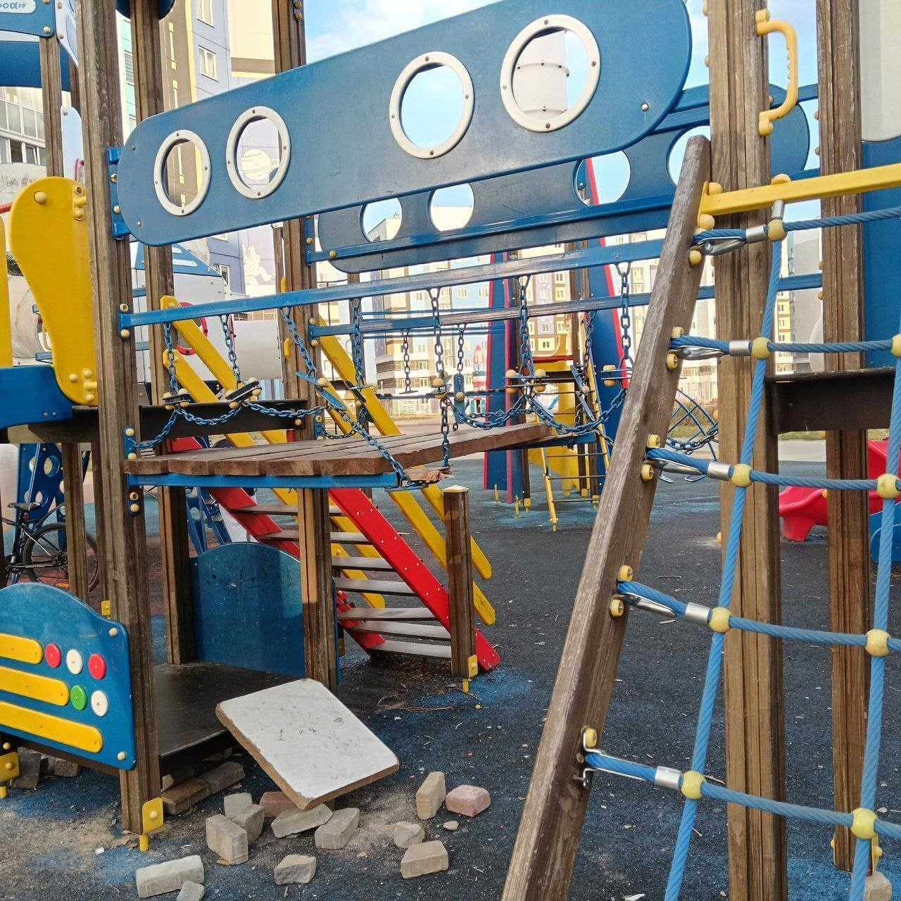 Некоторые детки - совсем не конфетки. Относительно новая и некогда очень классная детская площадка на Спутник-2 превратилась в травмоопасные руины. Неравнодушные могилевчане бьют тревогу.