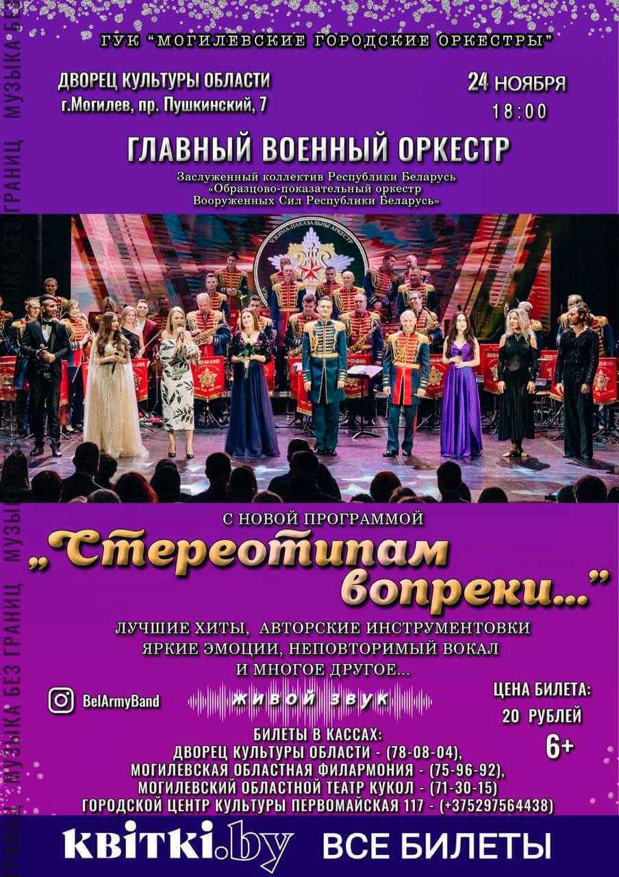 Заслуженный коллектив Республики Беларусь «Образцово-показательный оркестр Вооруженных Сил Республики Беларусь» выступит в Могилеве с новой музыкальной программой «Стереотипам вопреки»!