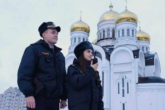 Сотрудники органов внутренних дел обеспечивают охрану общественного порядка и дорожную безопасность вблизи православных храмов, где проходят праздничные богослужения по случаю Рождества Христова.