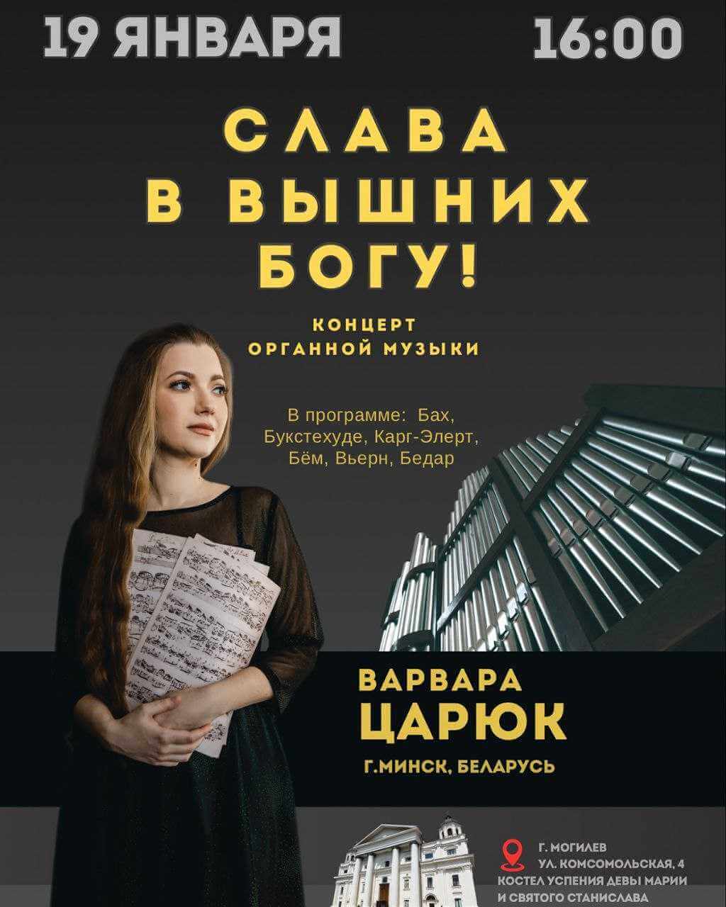 Концерт органной музыки пройдет 19 января в костеле Успения Девы Марии и Святого Станислава (ул. Комсомольская, 4).