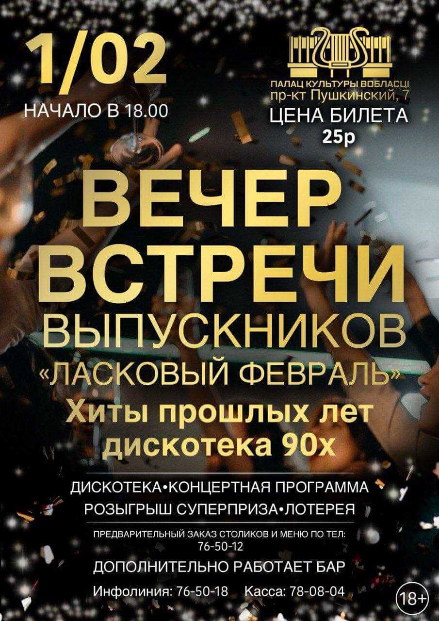 Дворец культуры Могилевской области 1 февраля приглашает на незабываемый вечер встречи выпускников «Ласковый февраль».