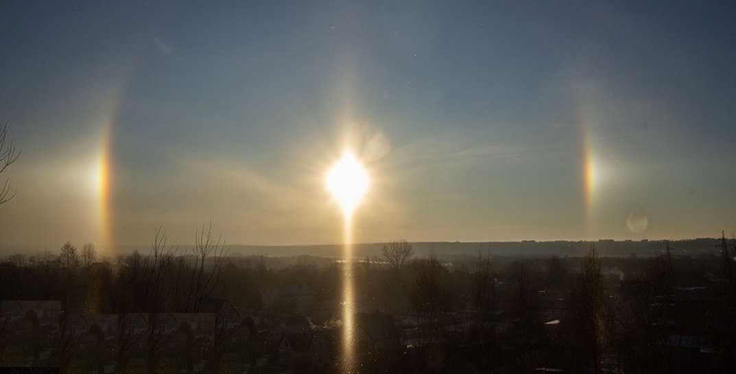 Могилевчанам повезло: мы могли увидеть не только солнечное гало, но и лунное. Оно возникает точно так же, но в этом случае Луна отражает солнечные лучи, которые потом преломляются в кристаллах.