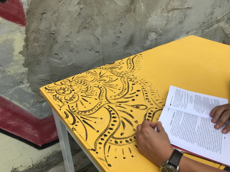 На реализацию проекта ушло около 3 месяцев. Сначала искали подходящую мебель, потом ее разрисовывали и искали подходящее место.