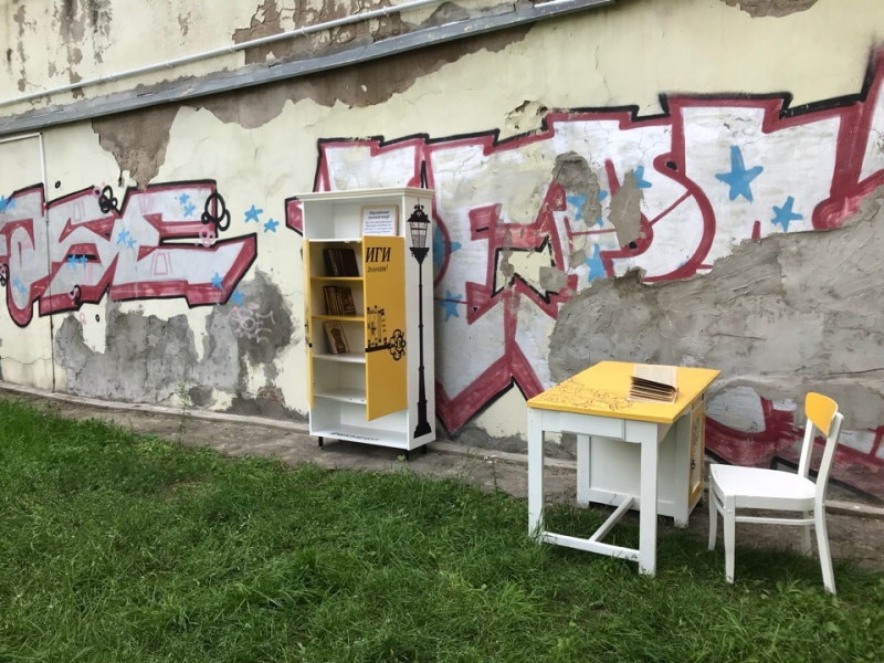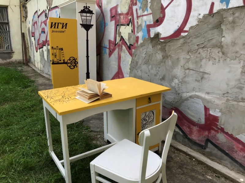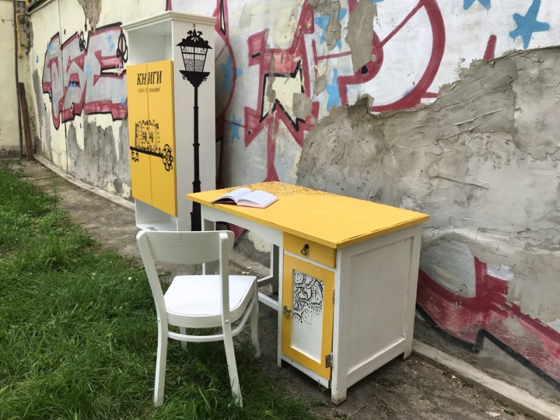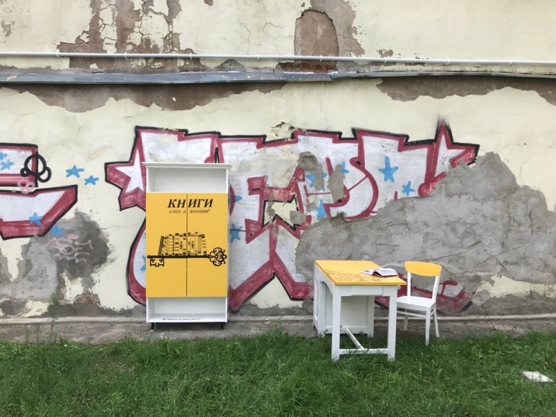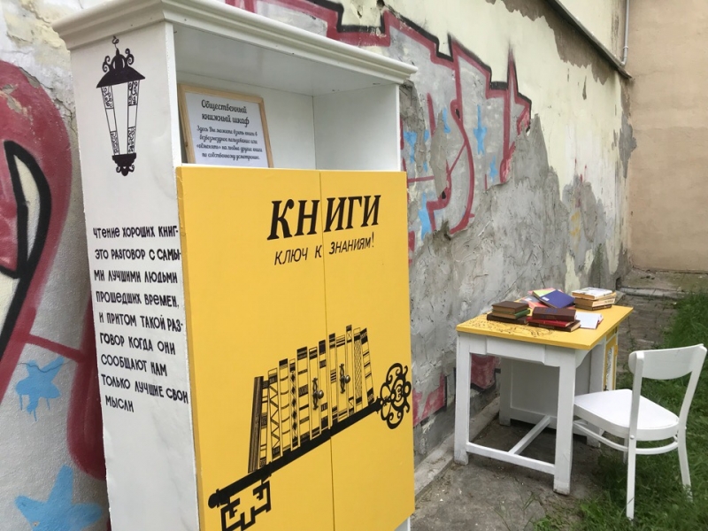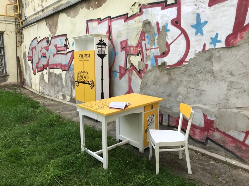 «Идея проекта была не только в том, чтобы организовать буккросинг, а в том, чтобы любой житель и гость города мог насладиться чтением книги в уютной обстановке, просто отдохнуть и сделать красивое фото в интересном дворике. Поэтому кроме шкафа есть и стол и стул.»