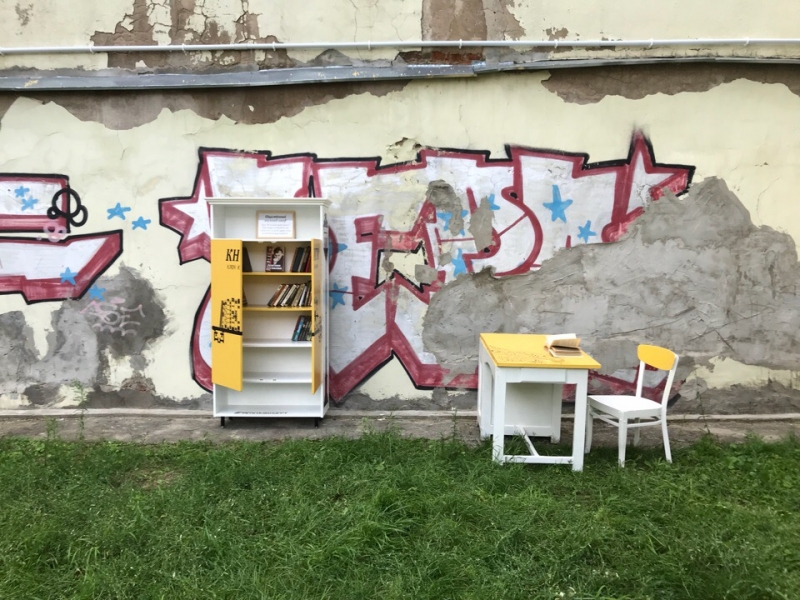 Так в одном из дворов в самом центре Могилева появился общественный книжный шкаф, который также можно назвать полноценным арт-объектом.