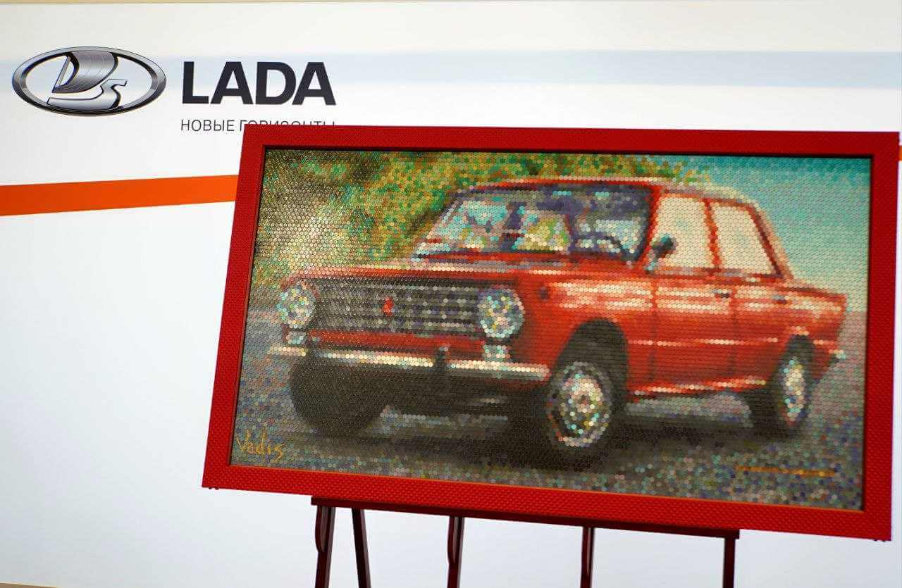Уникальную картину из копеечных монет могилевский художник презентовал сегодня в автоцентре концептуальной сети «Lada».