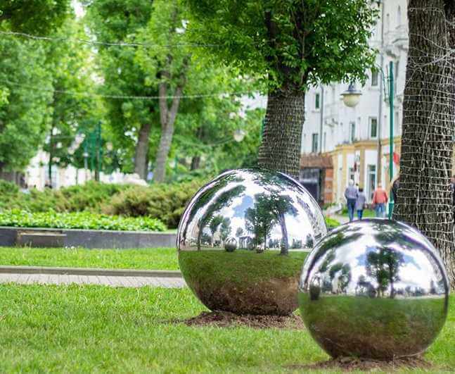 Новый объект искусства установили Комсомольском сквере. Шары выполнены из отражающего металла. Кроме того, они гладкие, поэтому хорошо отражают все, что их окружает. Это создает необычную и интересную картинку. Могилевчане во время прогулок не упускают возможности сфотографироваться рядом с новой достопримечательностью.