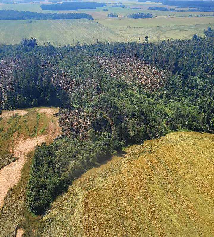 Фотографиями с борта вертолета делятся работники лесного хозяйства. По предварительным подсчетам, на Могилевщине территория поврежденного леса равна 420 футбольным полям. Наибольший удар стихия нанесла Могилевскому лесхозу. Здесь уже выявлено свыше 1,2 тысяч гектаров, требующих проведения сплошных санрубок.