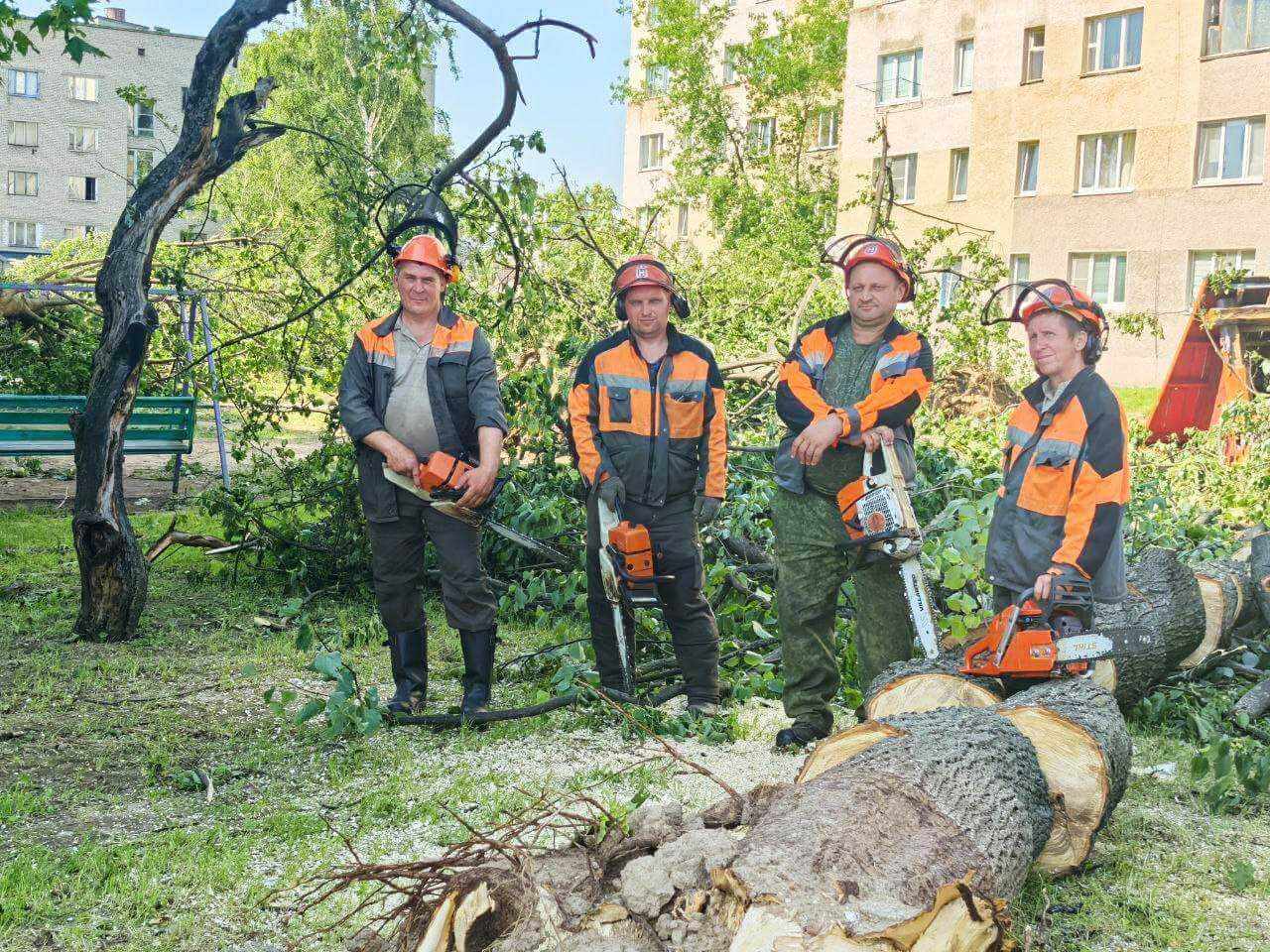 На помощь с наведение порядка в Могилеве выехали работники Белыничского, Могилевского, Чериковского, Чаусского и Быховского лесхозов — они помогают городу обрести былой комфорт и очищают от поваленных деревьев дороги.