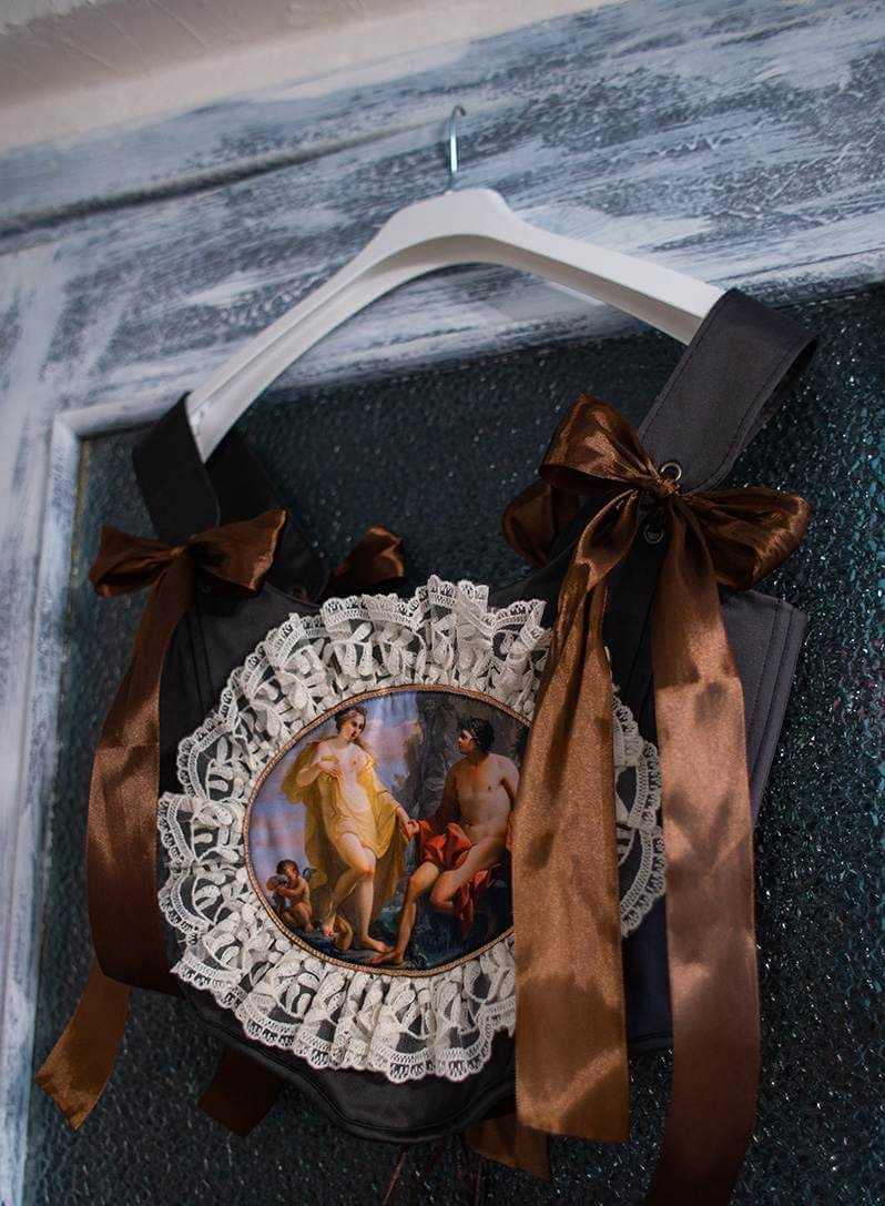 — Ася, некоторые твои корсеты выглядят так, будто прилетели к нам на машине времени — откуда эти необычные нашивки с элементами картин эпохи Возрождения?