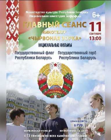 В Могилевской области «Главный сеанс» пройдет 11 сентября в 13:00 в кинотеатре «Чырвоная Зорка».