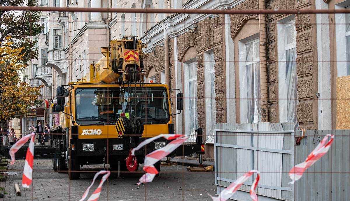 В Могилеве серьезно взялись за «сталинку», от которой постоянно валятся куски штукатурки на тротуар