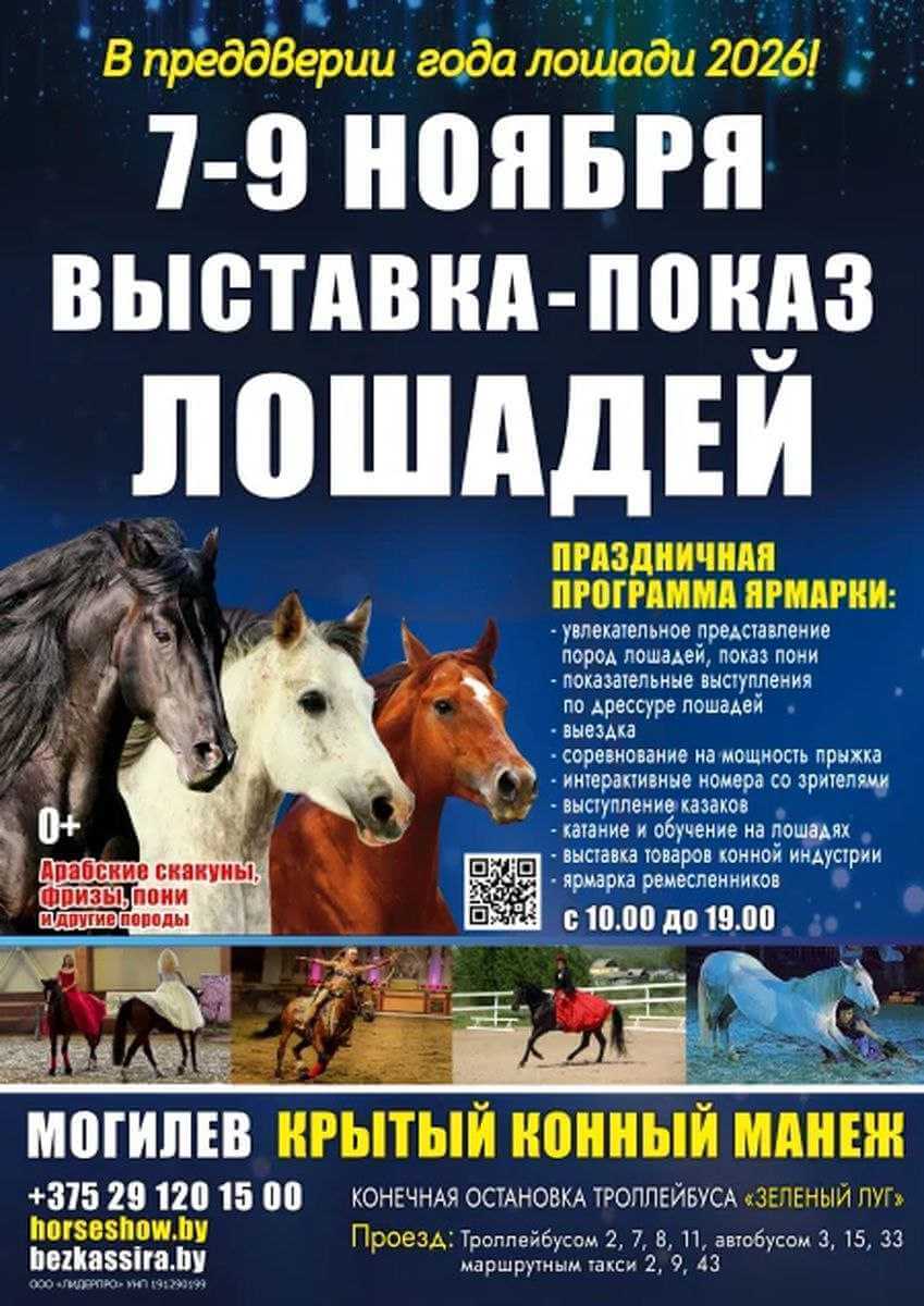 Международная выставка-шоу породистых лошадей «Осень-2025» пройдет 7-9 ноября с 10:00 до 19:00 в конном манеже (Могилевский район, Буйничский с/с, 19, южнее д.Городок).