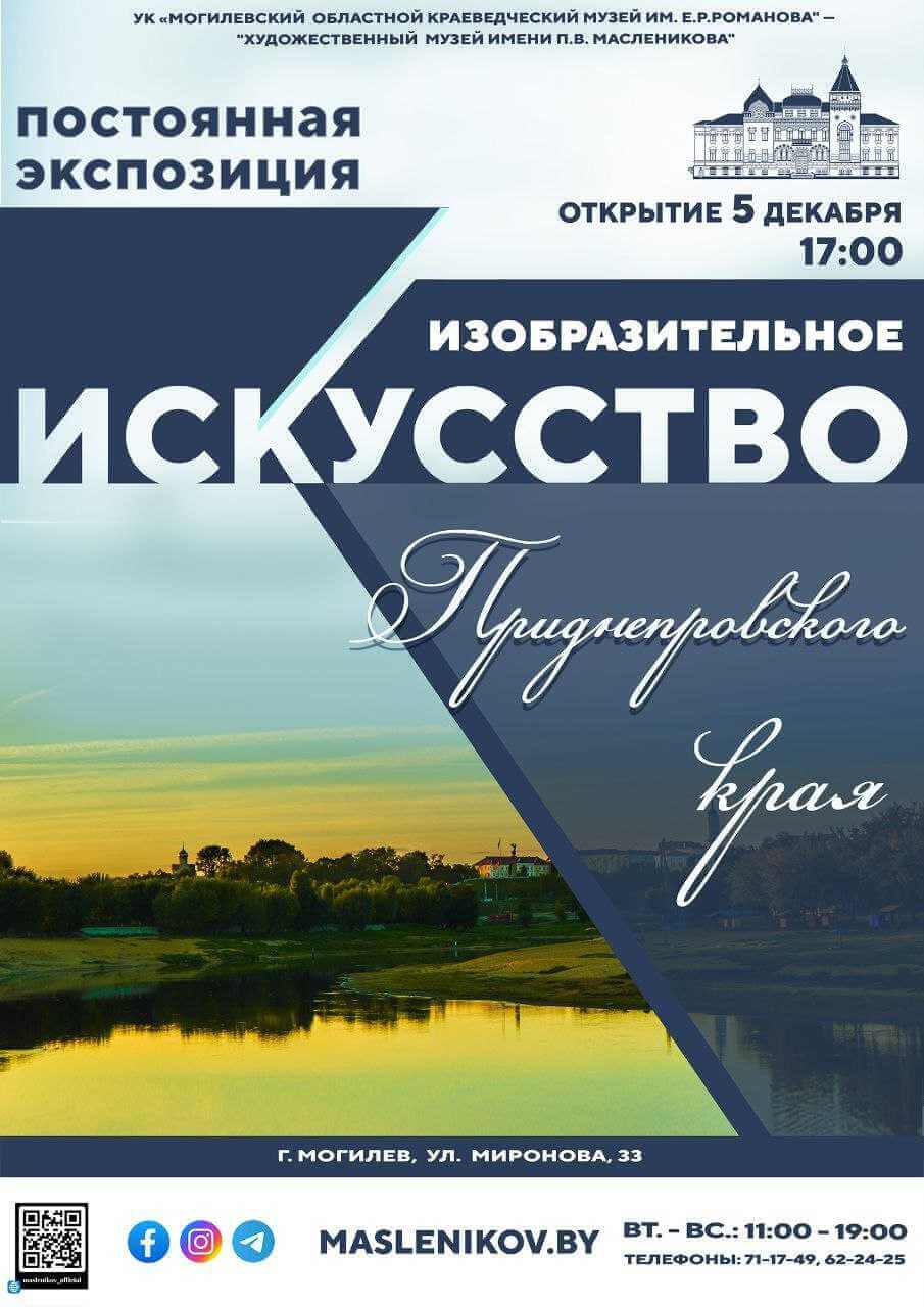 Торжественное открытие постоянной экспозиции «Изобразительное искусство Приднепровского края» состоится 5 декабря в Художественном музее им. П.В.Масленикова (ул.Миронова, 33).