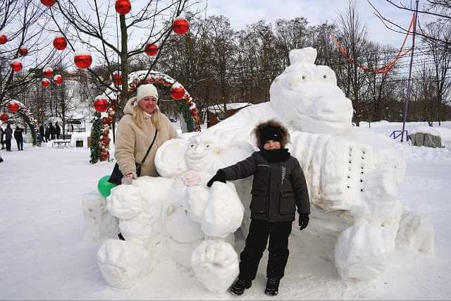 Вспомнить детство с крокодилом Геной и снежными шашками от «Моготекса». Задуматься о неторопливости жизни у громадной улитки от «Могилевоблводоканала». Прокатиться на паровозике от Могилевского отделения Белорусской железной дороги. Полюбоваться хрупкими снежными цветами от Могилевзеленстроя.