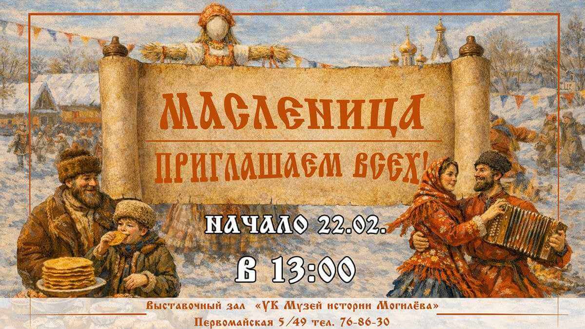 Тематическое мероприятие, приуроченное к празднованию Масленицы, пройдет в воскресенье, 22 февраля, в Выставочном зале Музея истории Могилева (ул.Первомайская, 5/49).