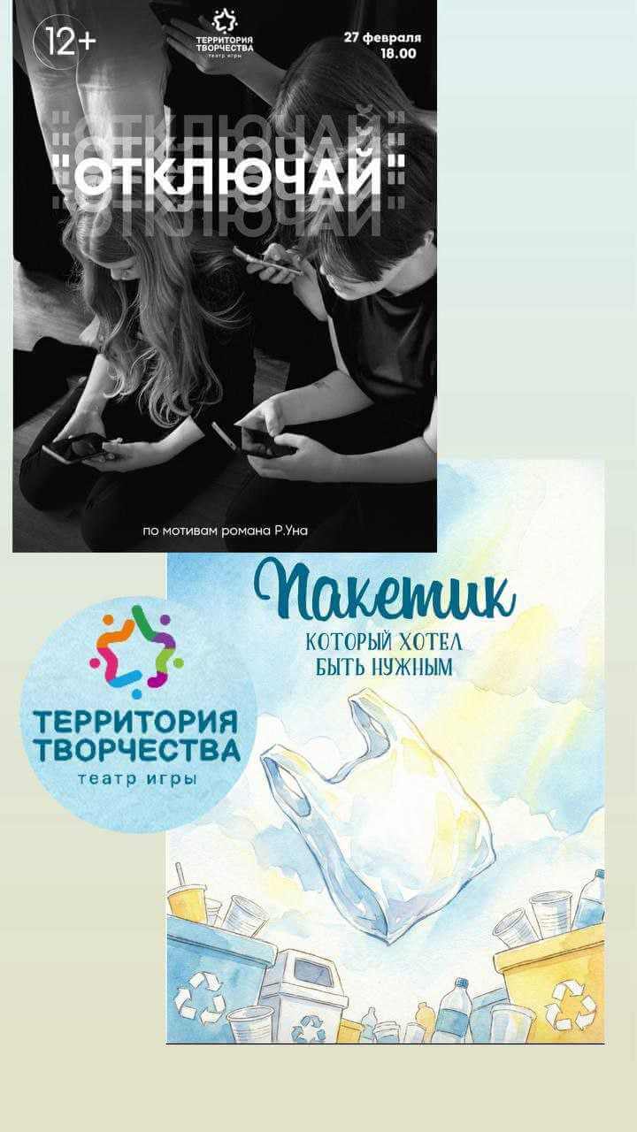 Воспитанники детской театральной студии «Территория творчества» представят в Могилеве два спектакля — «Отключай» и «Пакетик, который хотел быть нужным». Постановки можно будет увидеть уже в пятницу, 27 февраля, на сцене областного театра кукол (ул.Первомайская, 73).