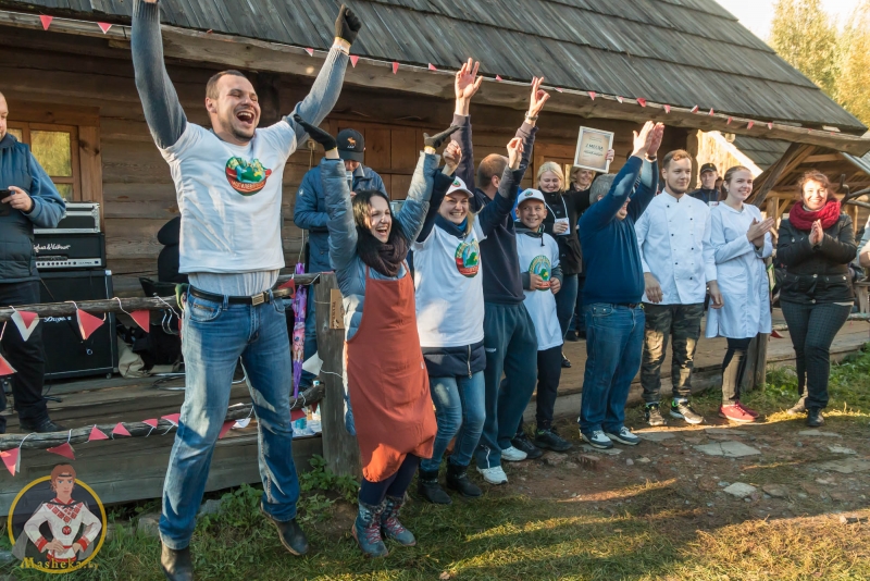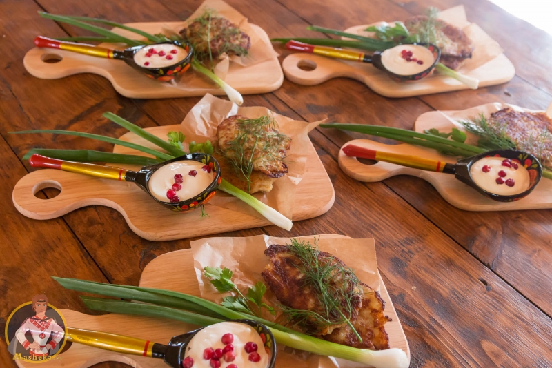 Команда из Минска приготовила овощные драники, в основе которых была картошка и тыква. Кроме того в состав блюда попал драник с мясом и тмином. Особенное внимание привлекла подача блюда – деревянные ложечки использовались под сметанный соус с брусникой.