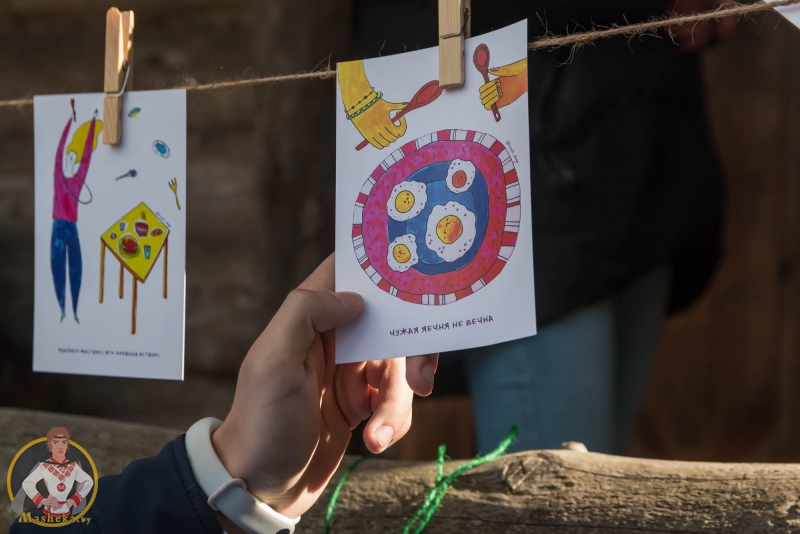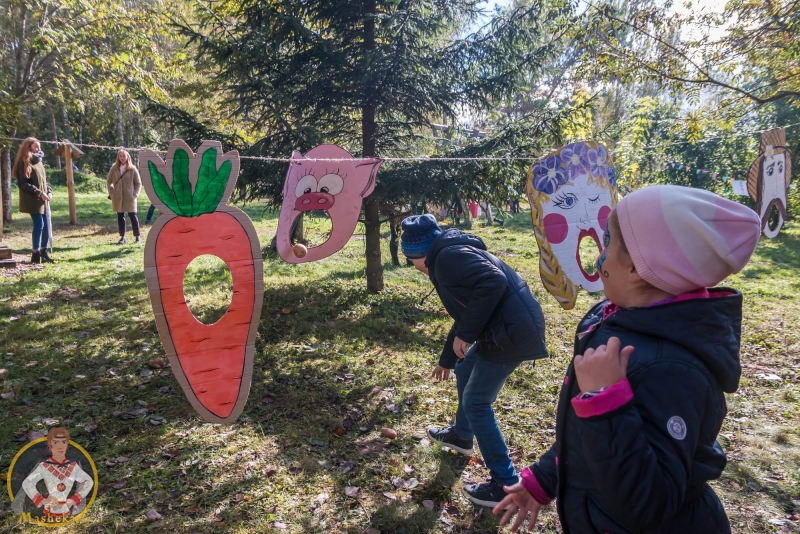 Гениальный человек придумал и воплотил конкурс “Бульба в рот”. Участникам всего то нужно было попасть картошкой в рот одному из нарисованных персонажей.