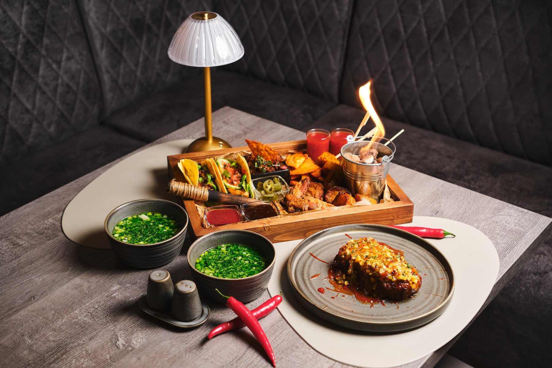 - Два вида такос с пико де гальо «Братья Гекко» с рваной свининой и соусом барбекю, и с курицей и сладким чили