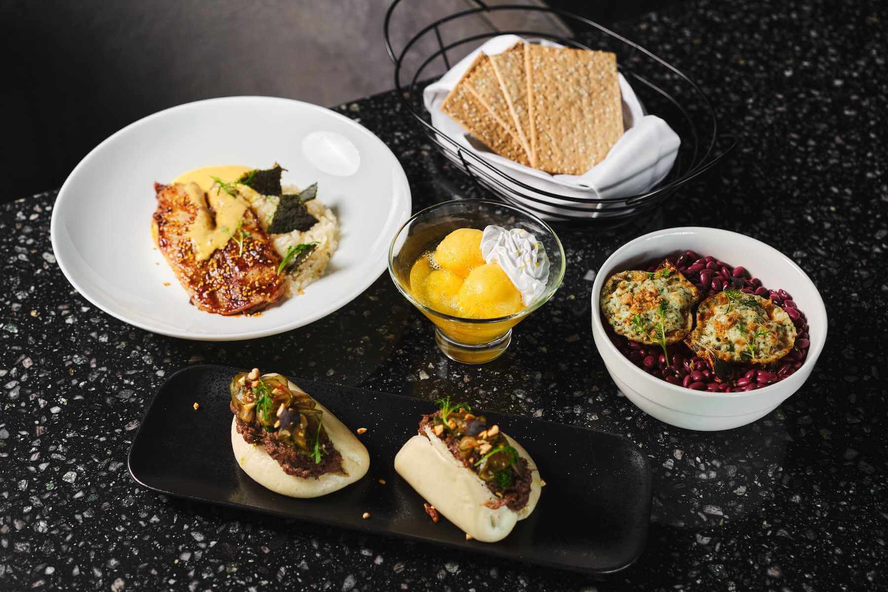 - Булочки Бао с томленой говядиной, мятным соусом и арахисом чили