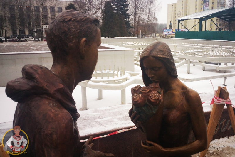 Еще один предновогодний подарок могилевчанам готовит Горводоканал. В сквере 40-летия Победы в Могилеве на «Плошчы сустрэч ля фантана» устанавливают скульптурную композицию - девушка и парень, встретившиеся у фонтана. Автор работы - скульптор Андрей Воробьев.