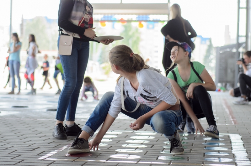Вооружившись разноцветной краской, валиками и кисточками активисты превратили скучный асфальт в веселую игровую площадку!