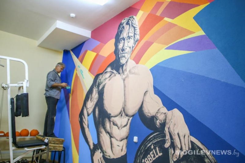 Автор настенной живописи в спортивном комплексе «Олимпиец» - могилевчанин Александр Росинов.