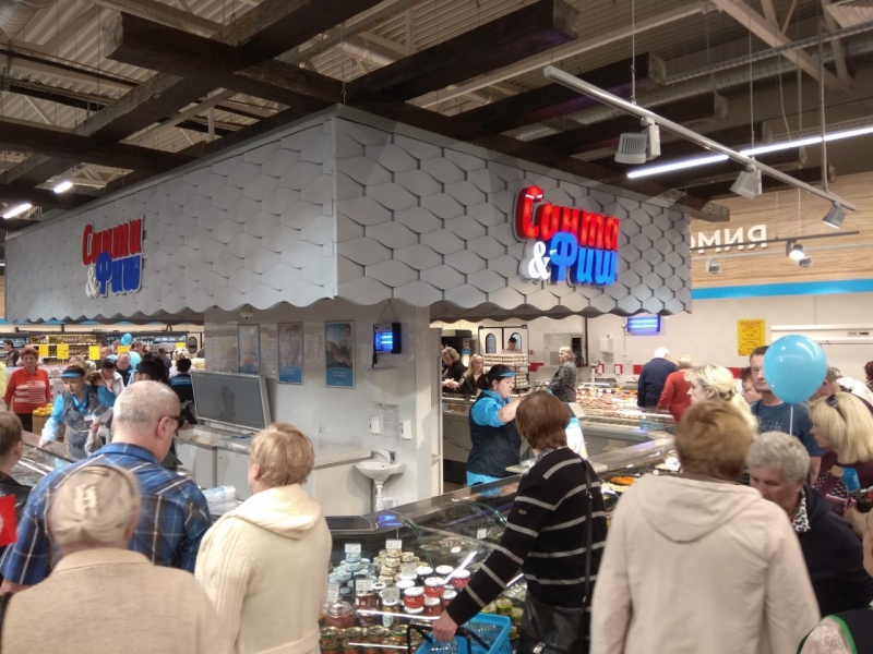 «Новый магазин должен стать одним из центров притяжения покупателей в Могилеве. Прежде всего, это один из немногих торговых объектов в стране с рыбным островом, где можно найти свежий голландский матиас. Акцент сделан и на повышенном выборе свежих фруктов и овощей, а еще молочных товаров и копченостей. Заодно супермаркет развивает популярную сейчас концепцию «Food to Go», то есть предлагает взять с собой суши, салаты, пиццу и другие блюда», – отмечают в сети «Санта».