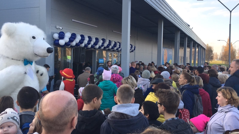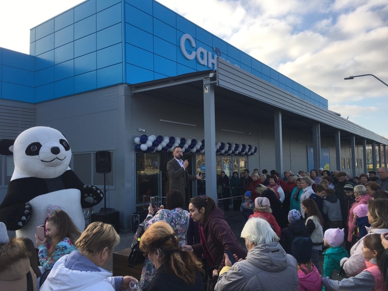 Магазин открывали с праздником и весельем. Первым покупателям раздали 1000 пачек бесплатного мороженого, а детям – еще и воздушные шары. Настроение на улице поднимали ведущий и ростовые куклы. В самом магазине было оживленно: запуск магазина «Санта» здесь ждали с нетерпением.